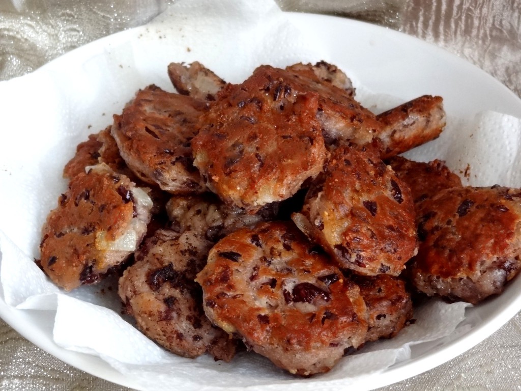 - Faire chauffer un fond d'huile neutre pour cuisson dans une poêle, humidifier les mains et former des boulettes de la préparation avant de les poser délicatement dans la poêle.