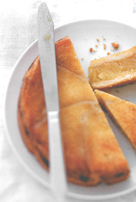 - Retirez la croûte des tranches de pain et coupez-les en deux. Trempez rapidement les 2/3 des tranches dans le beurre clarifié puis chemisez le fond d'un moule à manqué en les faisant se chevaucher légèrement. Versez la compote par-dessus. Trempez le reste des tranches de pain dans le beurre clarifié et placez-les sur la compote de la même manière.