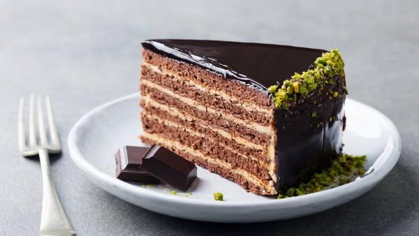 - Couper le gâteau en tranches avec un couteau bien aiguisé, trempé dans de l’eau chaude et séché.